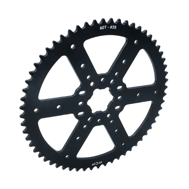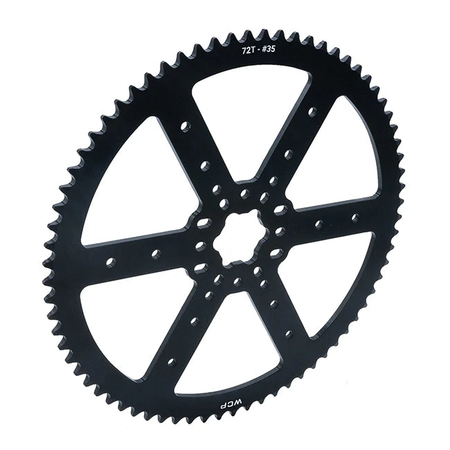 Sprockets are profiled wheels with teeth that mesh with chain to transfer motion. WCP's sprockets are custom manufactured out of high strength aluminum, black anodized for superior performance. Plate sprockets include WCP MotionX.