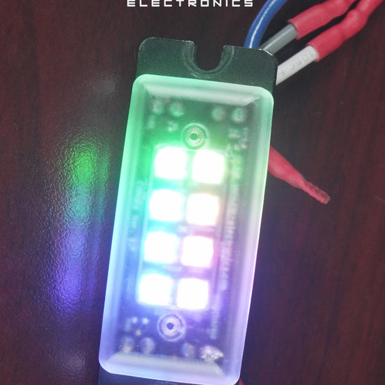 - Eight onboard individually addressable LEDs with multiple built-in animations (Larson, rainbow, twinkle, color fades, and more) — no extra wiring required